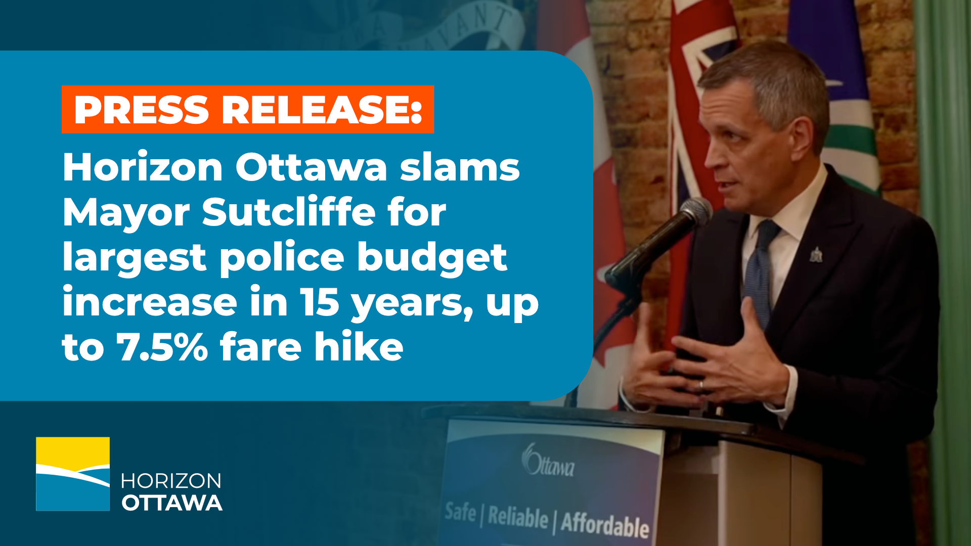 OTTAWA – Horizon Ottawa is calling on City Council to reject Mayor Mark Sutcliffe’s proposed 2026 budget directions, which include a massive 6.5% increase to the Ottawa Police Service budget (the largest in 15 years) while continuing to neglect critical public services such as transit.